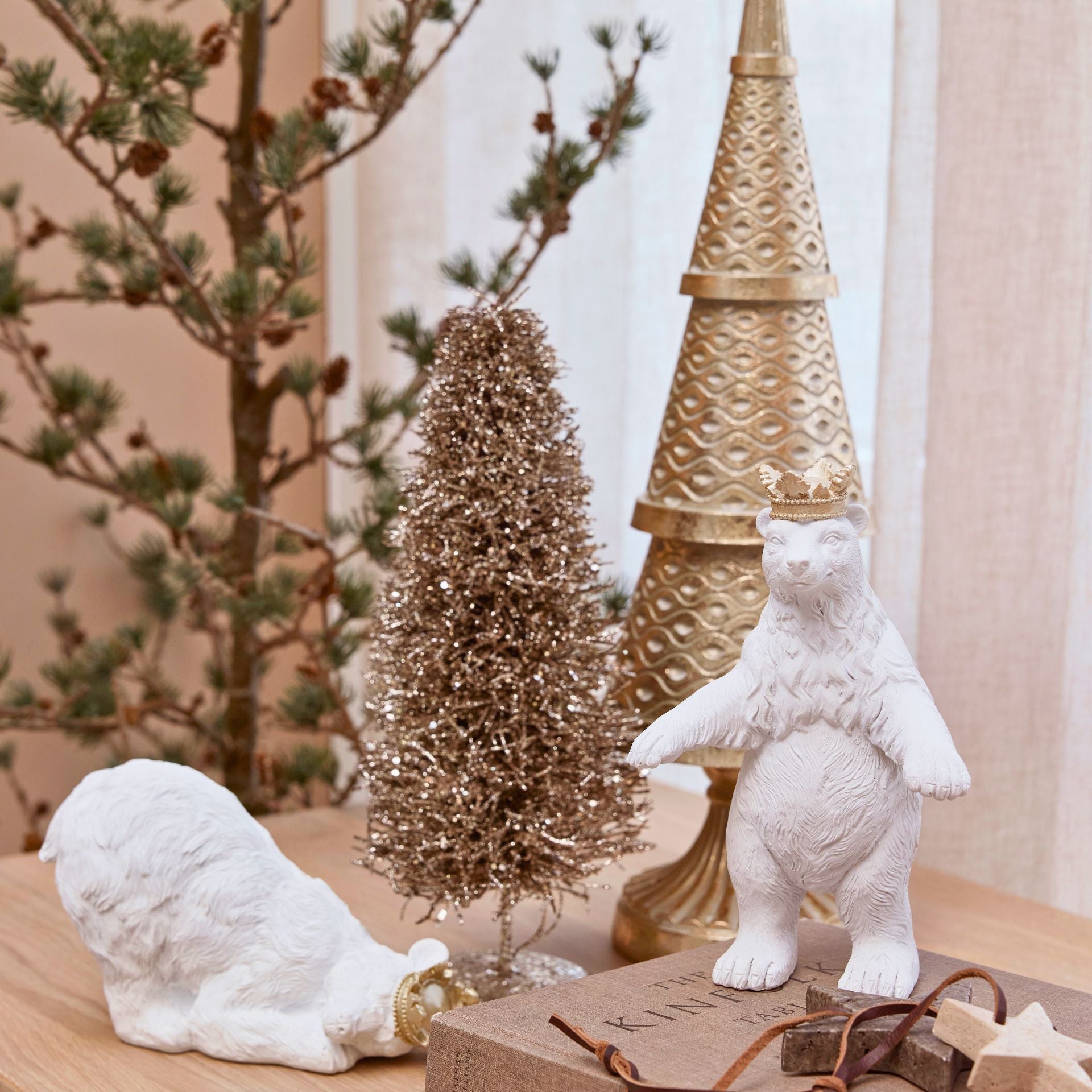 Az Alana világos antik arany karácsonyfa a klasszikus elegancia és a modern ünnepi stílus találkozása. Lenyűgöző, részletgazdag mintázatával és antik arany színével igazi ékszere lesz az otthonodnak. A 50 cm magas, karcsú sziluett elegánsan emelkedik a díszes talapzaton, így önmagában is látványos dísze az ünnepi asztalnak vagy a kandallópárkánynak.