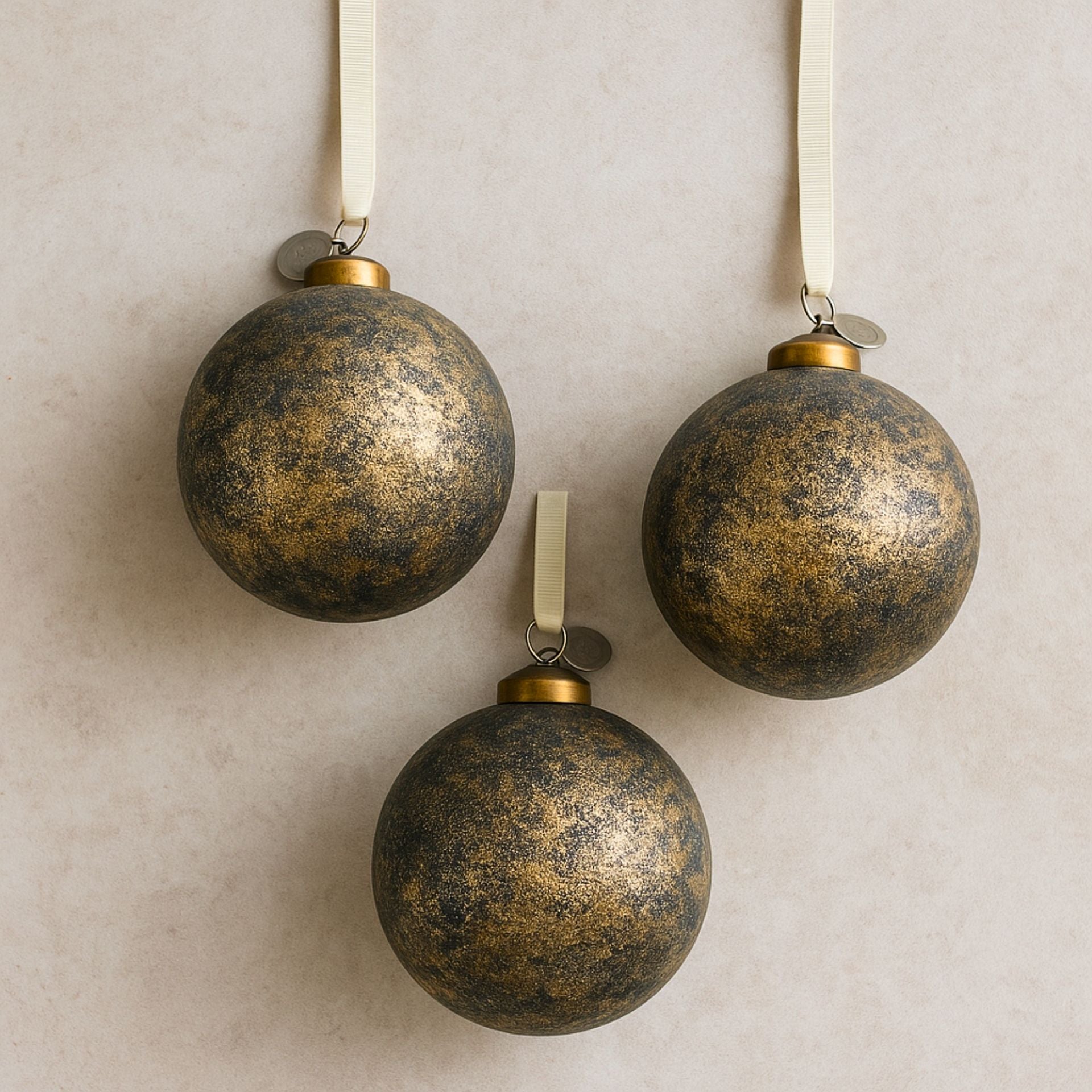 - 3 darab kézzel fújt üveg dísz – mindegyik egyedi, finoman antikolt textúrával