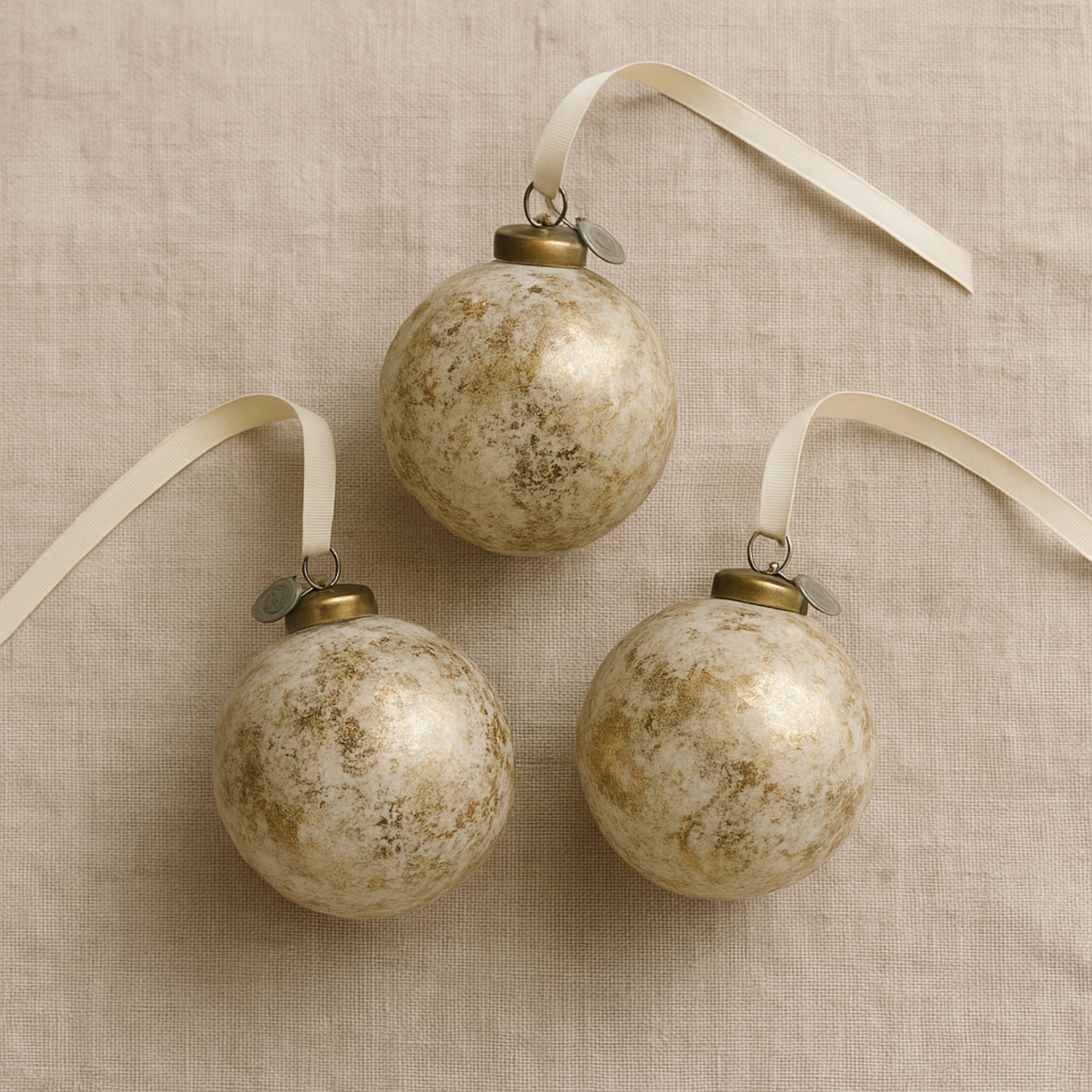 Clearena antik arany–törtfehér üveg karácsonyfadísz szett – 3 db (Ø8 cm, függeszthető)