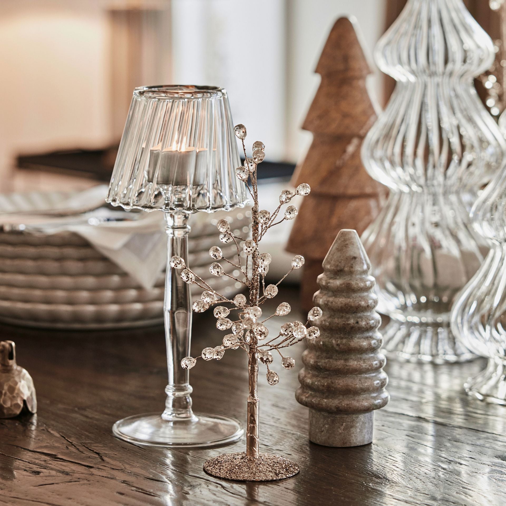 Crysilia arany akril karácsonyfa – 30 cm (csillogó gyöngydíszekkel)