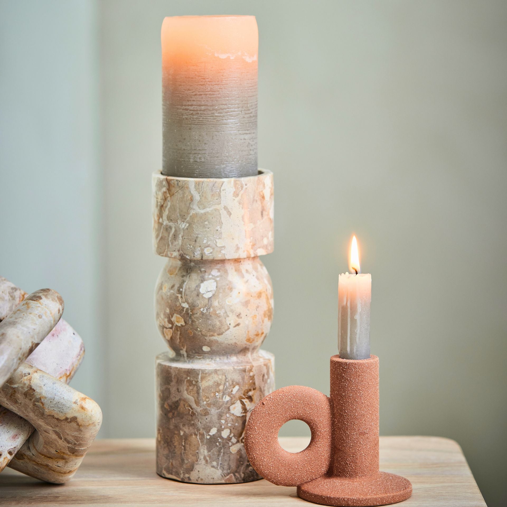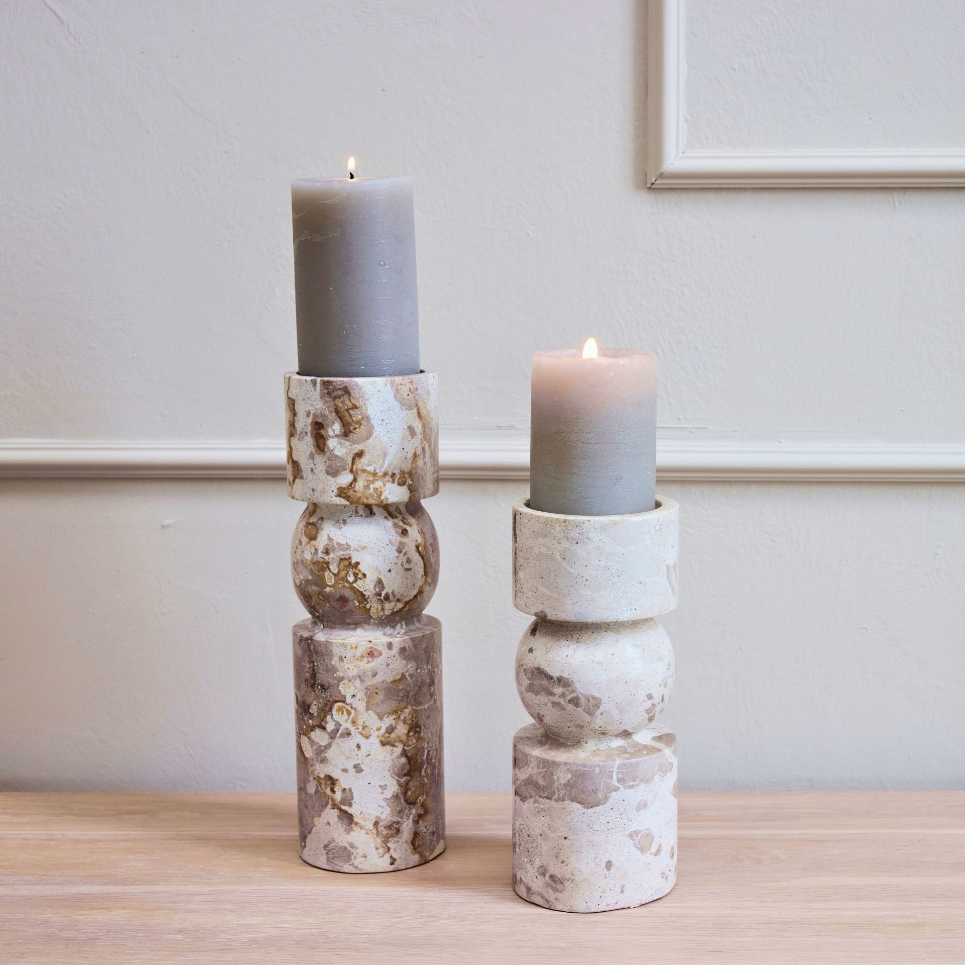Luxus és természetesség egyben – fedezd fel az Ellia világosbarna márvány gyertyatartót!